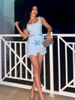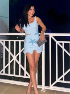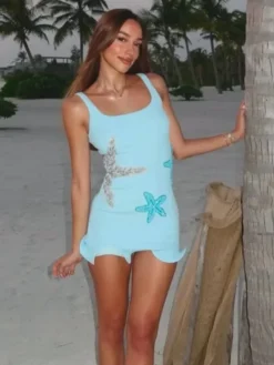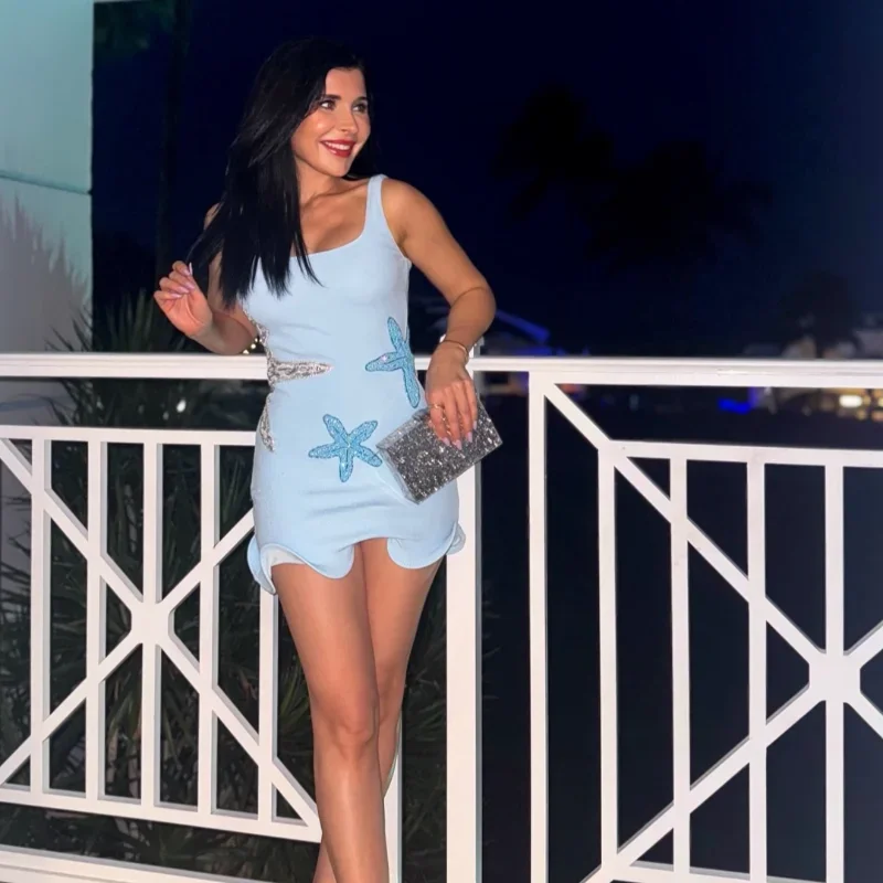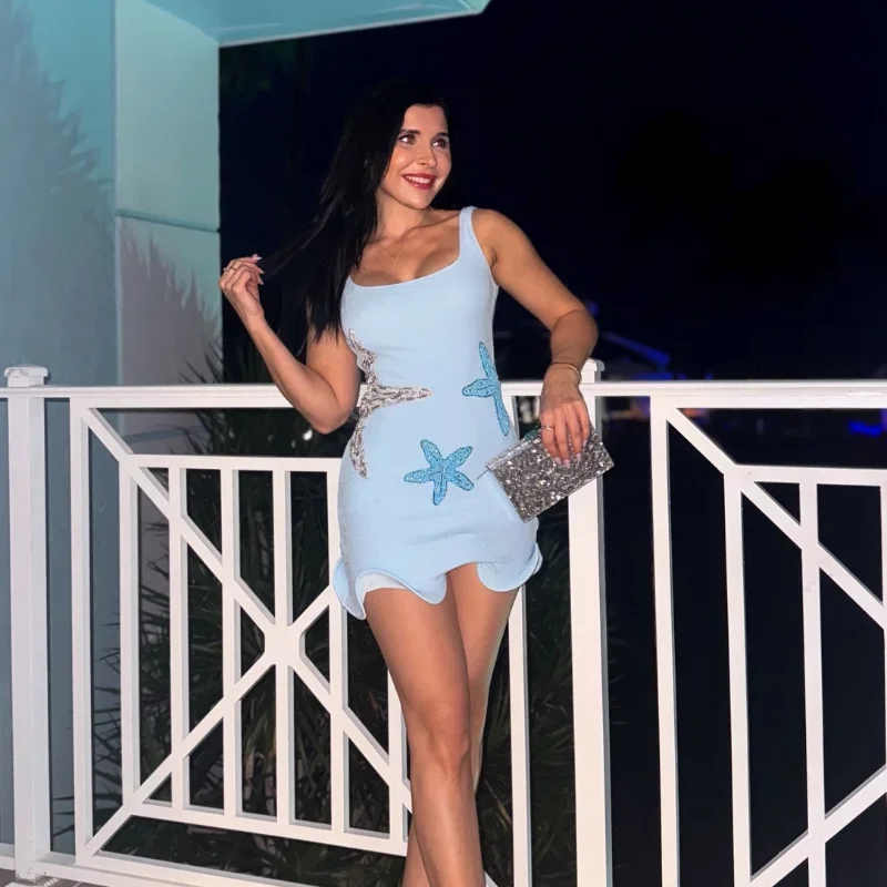 Shiny Solid Sequin Starfish Sling Dress Elegant Backless Square Neck Bodycon Dresses For Women 2025 Summer Holiday Party Gowns
